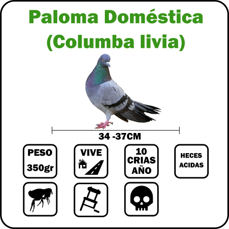 Se sabe que las palomas / y otras aves urbanas pueden ser portadoras de más de 60 enfermedades transmisibles a las personas, incluyendo salmonella, histoplasmosis, meningitis y encefalitis, Así mismo son portadoras de pulgas, garrapatas, piojos y ácaros, que pueden perjudicar seriamente la salud de las personas.