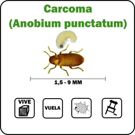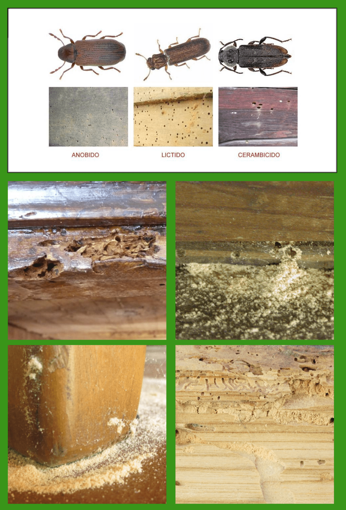 Normalmente la presencia de insectos xilófagos se detecta mediante las huellas que dejan, como pequeños agujeros en la madera afectada, deformación de la misma, presencia de polvo en la zona afectada. Es importante realizar una inspección técnica previa para determinar el tipo de insecto que ataca la madera, el nivel de infestación y las medidas más acertadas para solucionar el problema.