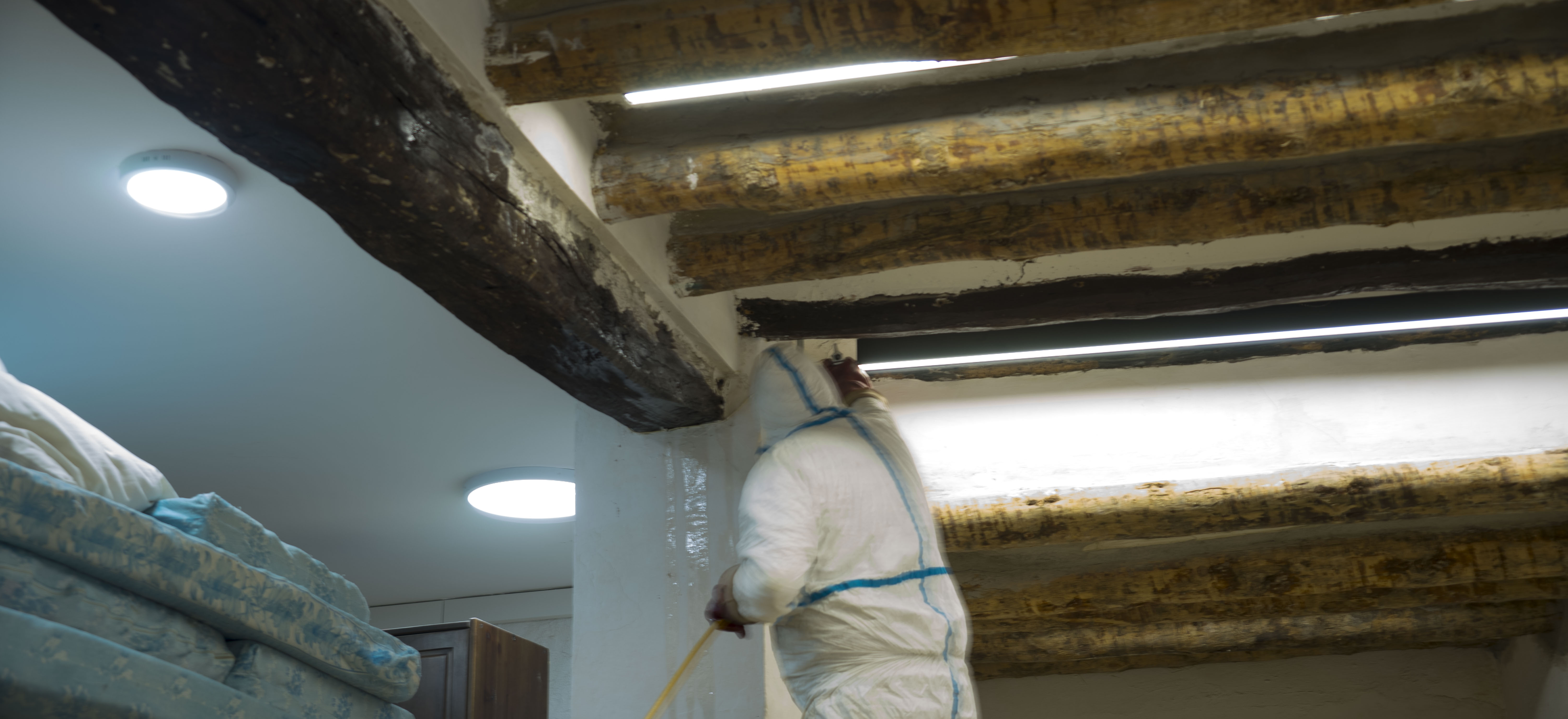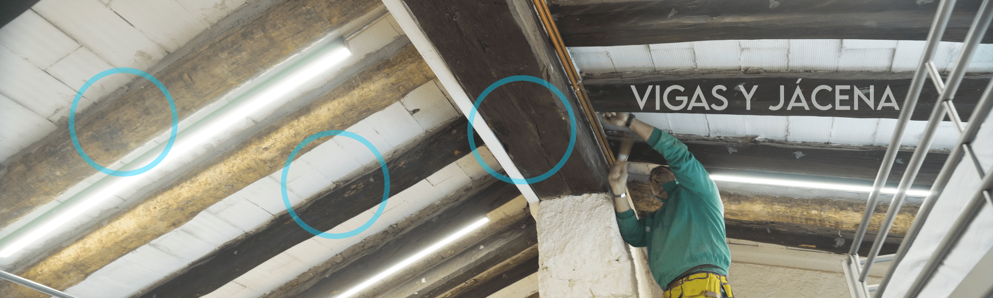 Inspección y diagnóstico: Lo primero es determinar el estado de la madera. Si está infestada por insectos xilófagos (termitas, carcoma, capricornio) y hongos. También medir la resistencia de la misma y la calidad estructural de esta, para conocer el estado de salud de su estructura de madera.